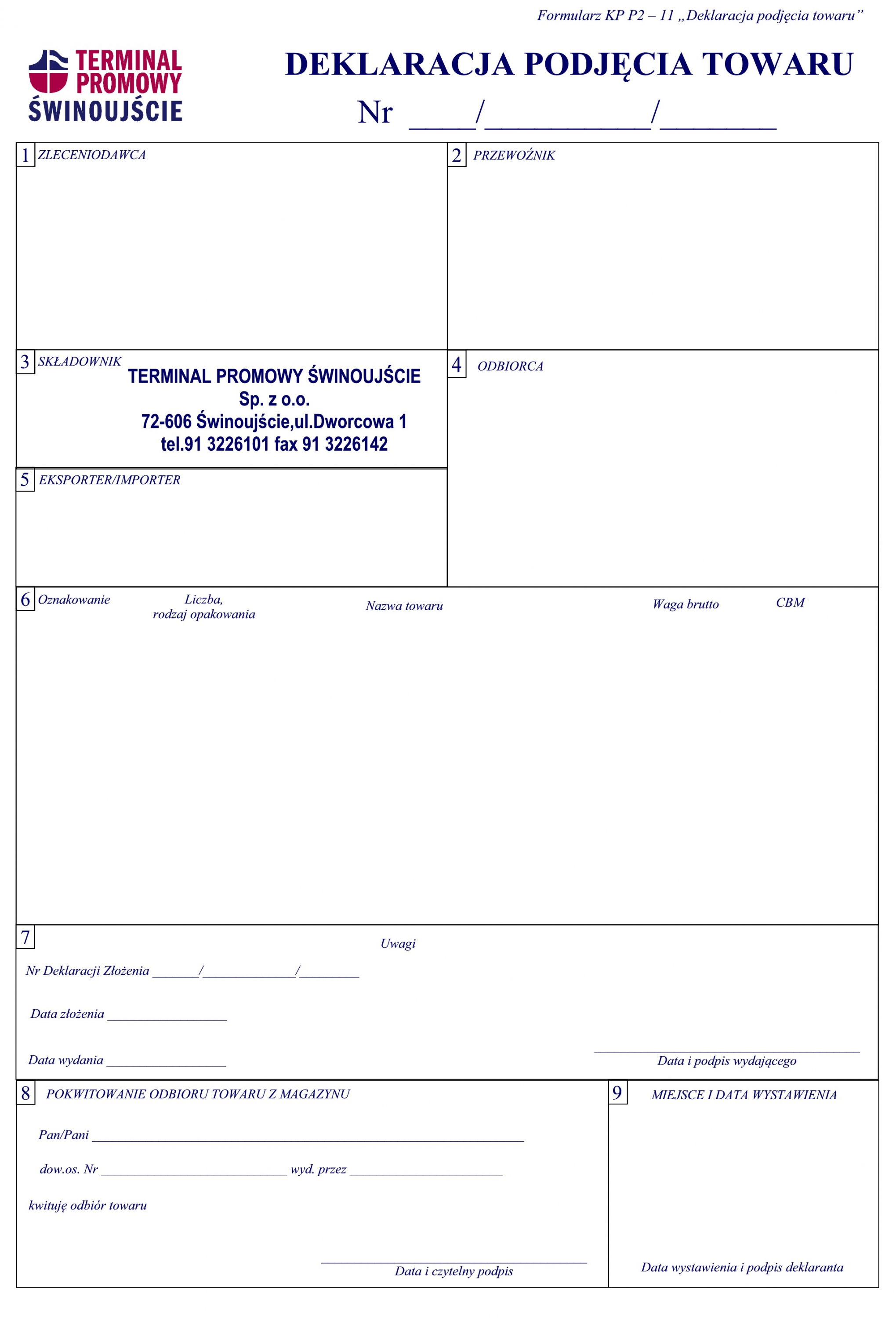 KP P2 -11 „Deklaracja podjęcia towaru”